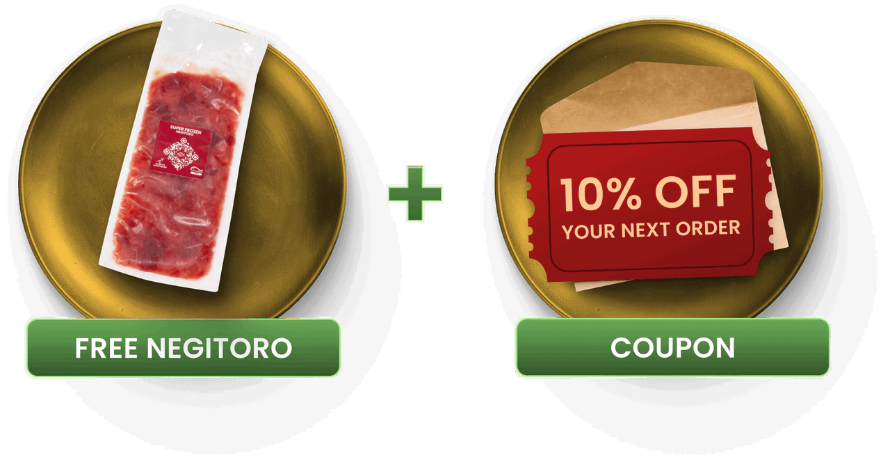 Order by December 24th and receive a complimentary Negitoro with your order, plus a 10% coupon for your next purchase.